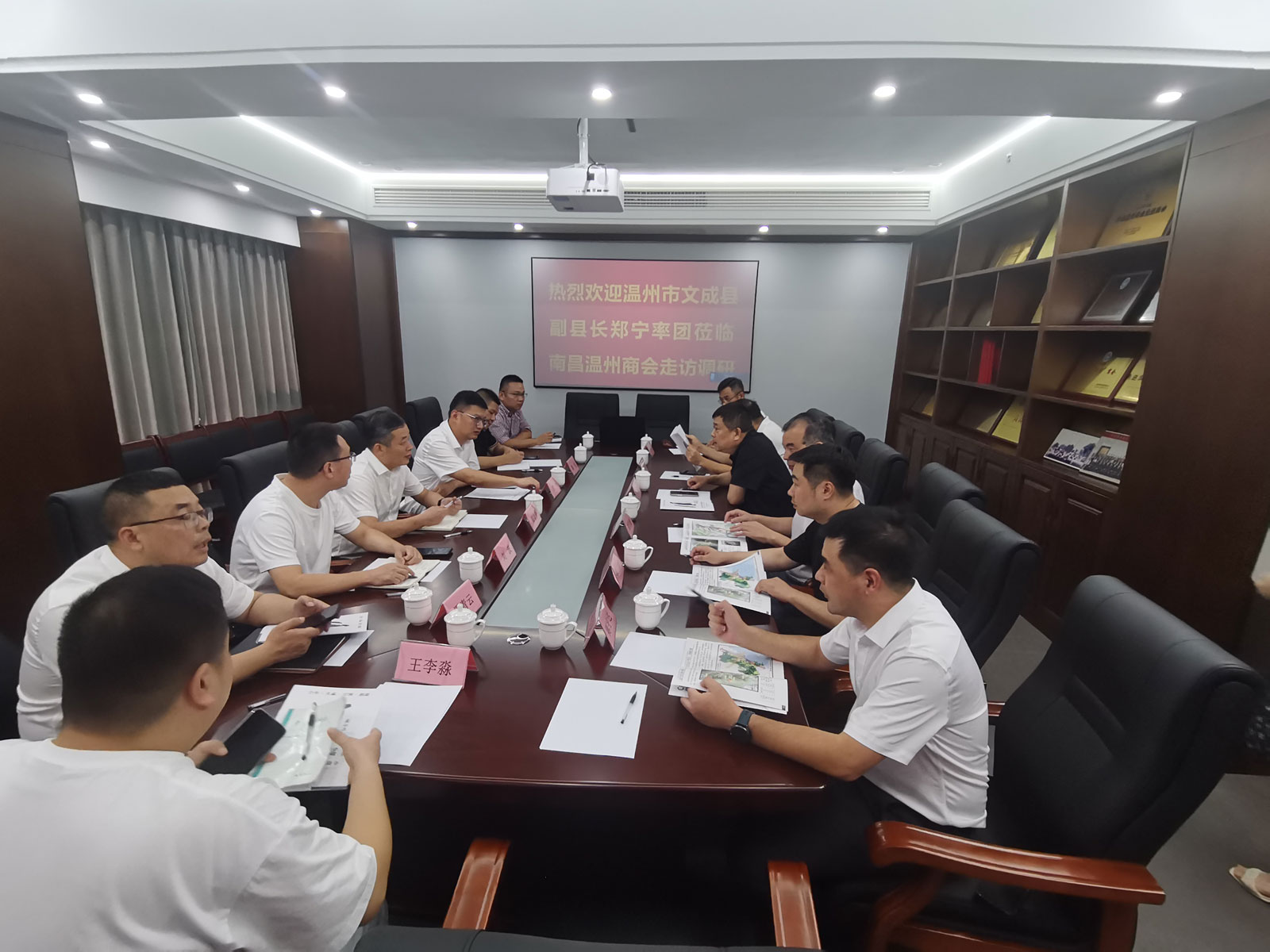 为进一步推动在昌温商企业家利用文成县资源优势实现高质量发展,南昌温州商会会长方永棣、执行会长兼秘书长胡方德、常务副会长蔡景旺、陈增,常务副会长单位环林集团常务副总裁陈宇达,理事林光建在商会热情接待了来访领导并一起举行了座谈会。