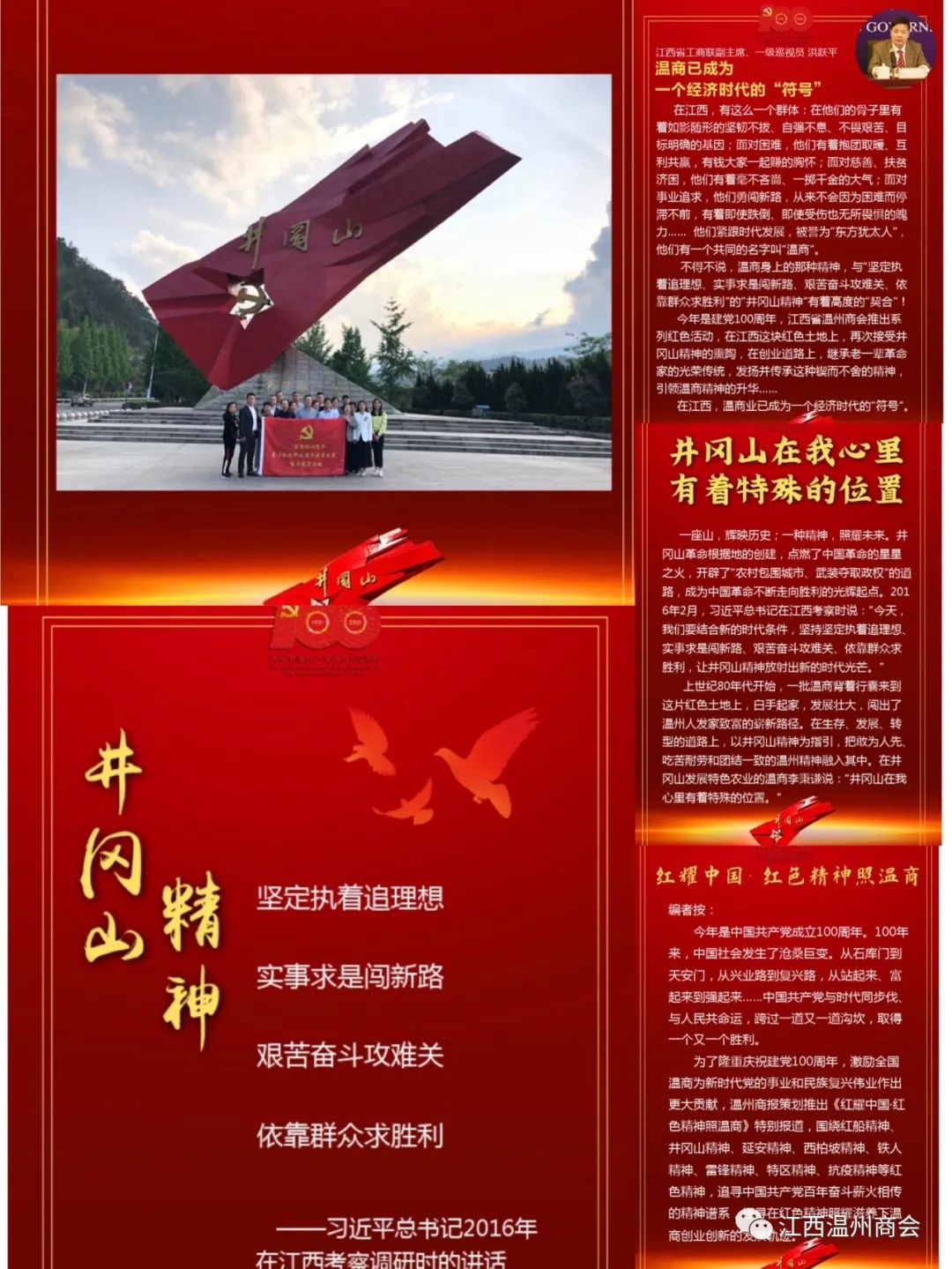 在迎来中国共产党建党100周年之际,温州商报专题报道——红耀中国·红色精神照温商,用整版介绍在江西这片红土地上的温州商人们。