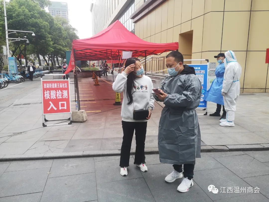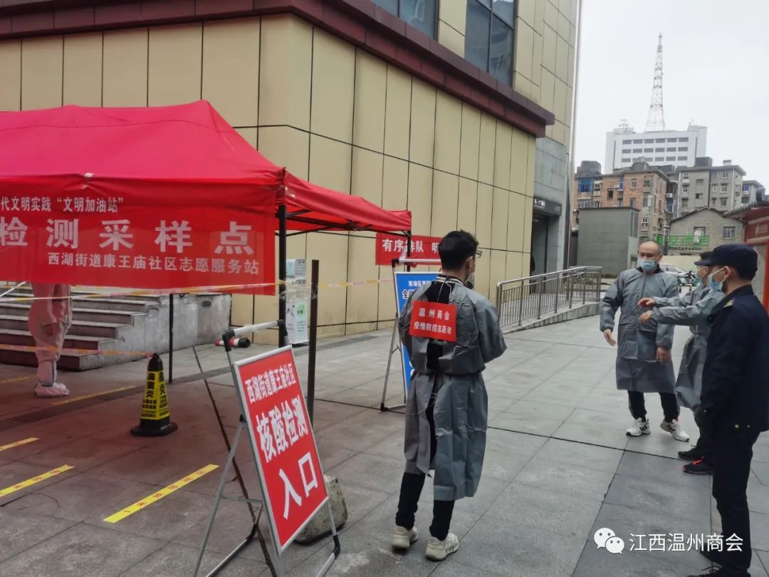 3月24日清晨7:00开始,南昌温州商会党支部的党员志愿者在 会长方永棣、书记吴振汉的带领下,组成志愿者服务队,从清晨7点准备,7点30分做好全员防护后、准时进入到西湖街办康王庙社区的抗疫一线点,与社区、街办、医护人员、民警等,共同担负起维持现场工作秩序和核酸检测工作,留下最美丽的瞬间。