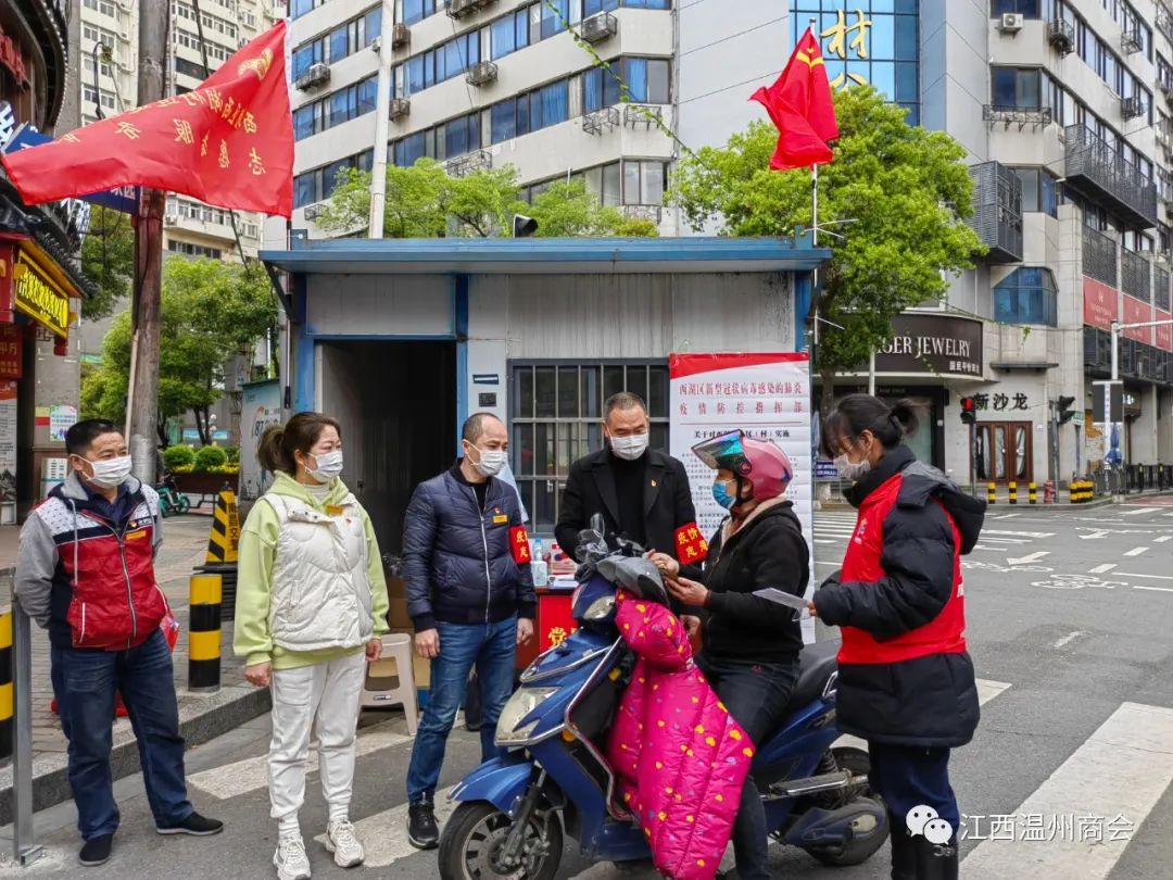 监事长、江西新中南厨房设备有限公司董事长蔡邦喜组织公司的党员和青年志愿者主动对接南昌市西湖区西湖街办,深入开展志愿服务。他们积极维持现场秩序、协助测量体温、引导群众快速扫码、采集信息登记、开展政策宣传、为行动不便的老人和孩子提供及时帮助。